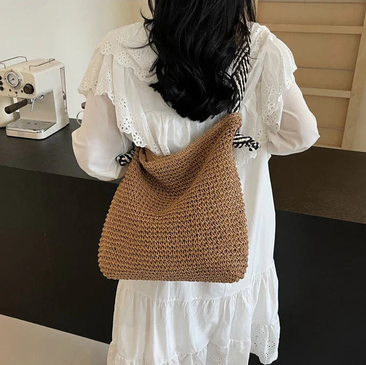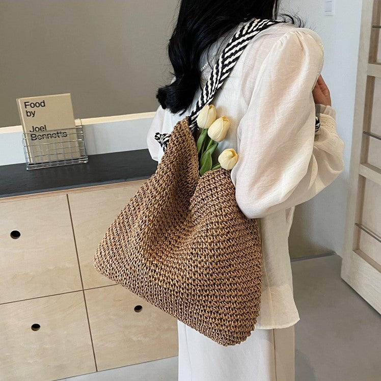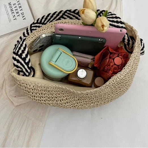 Laissez-vous séduire par l’élégance intemporelle de notre cabas en paille, spécialement imaginé pour les femmes modernes qui apprécient la simplicité raffinée et le charme naturel.