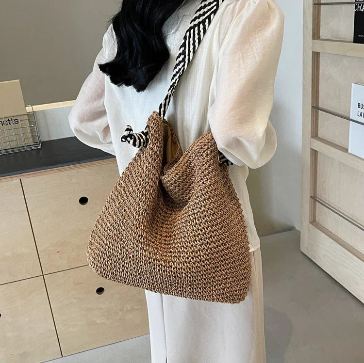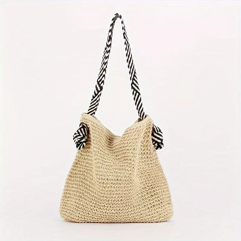 - Poignées larges en coton, ornées de rayures délicates, pour un porté épaule confortable et élégant.