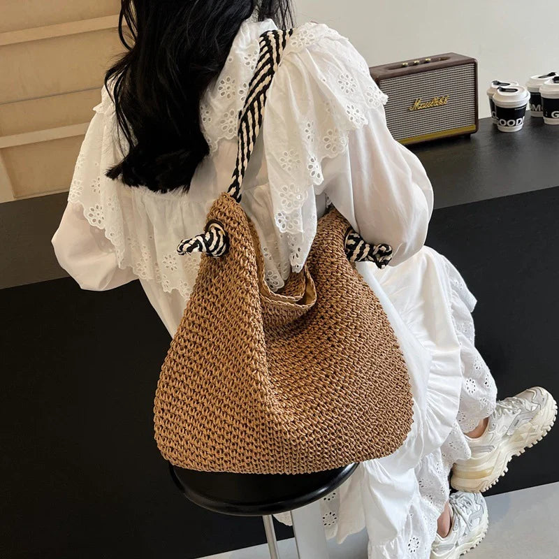 Cabas en paille naturel – Collection été Mervisca