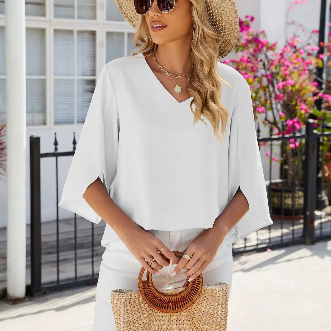 Chemisier Flottant à Col V & Manches Fendues