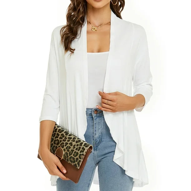 Léa Ruffle – Cardigan Décontracté à Volants & Manches 3/4